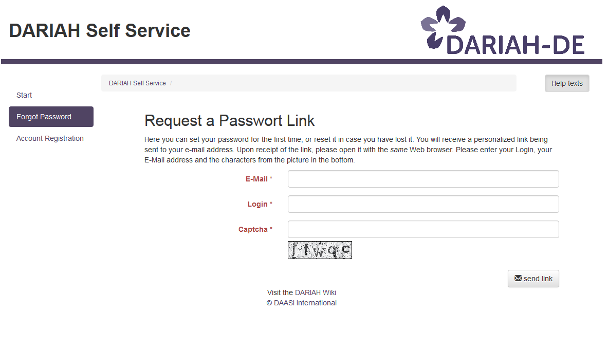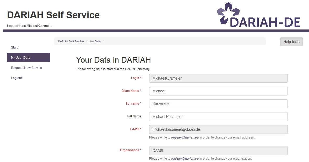 The Self Service enables users and potential users to trigger requests without having to contact the DARIAH support first. This page documents and explains functions of the Self Service portal.