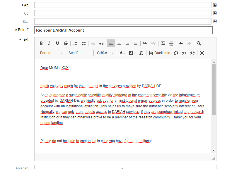 Instead, the DARIAH support will check manually, whether it does belong to an institution: